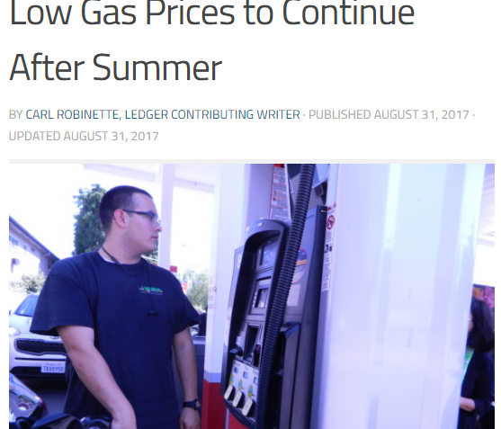 Check out the excerpt below of Carl’s article “Low Gas Prices to Continue After Summer” originally published in the Los Feliz Ledger.