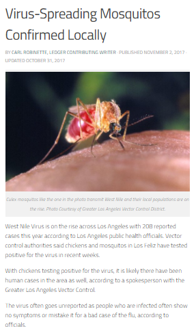 Check out Carl’s article, “Virus-Spreading Mosquitos Confirmed Locally,” Originally Published in the Los Feliz Ledger.