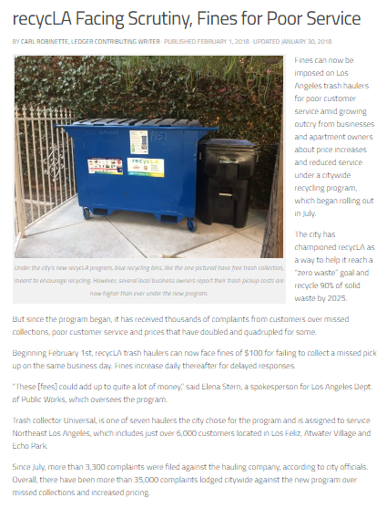 Check out Carl’s article, “recycLA Facing Scrutiny, Fines for Poor Service” Originally Published in the Los Feliz Ledger.